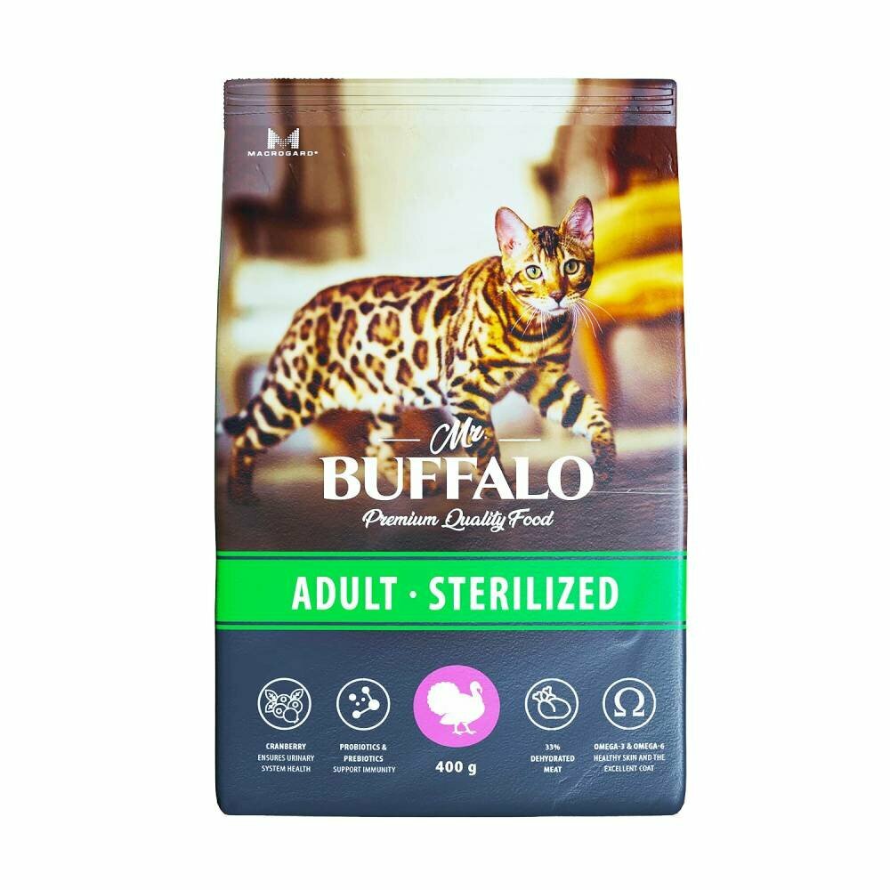 Баффало Mr.Buffalo Sterilized 0,4кг с индейкой сухой корм для стерилизованных кошек (078571)