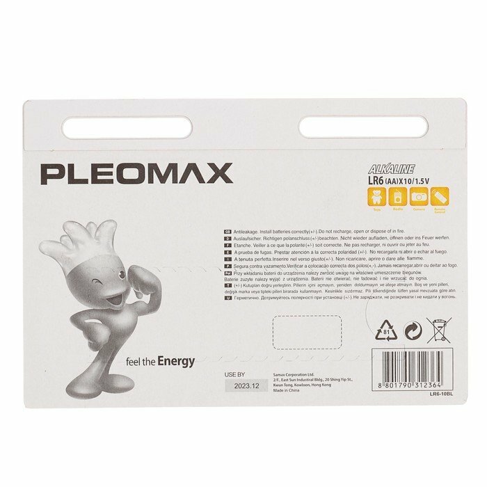 Батарейка алкалиновая Pleomax, AA, LR6-10BL, 1.5В, блистер, 8+2 шт. (комплект из 2 шт) информация: