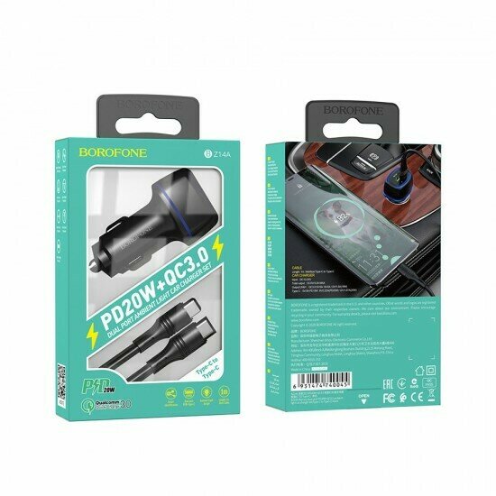 Автомобильное зарядное устройство BZ14A Mercury PD20W + QC3.0 набор информация: