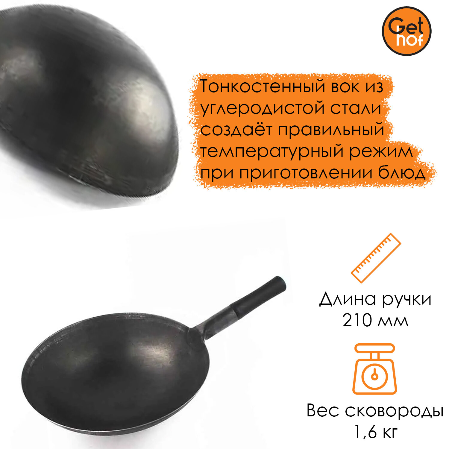 Сковорода-вок (Wok) стальная GetHof BlackBakelit 34 см информация: