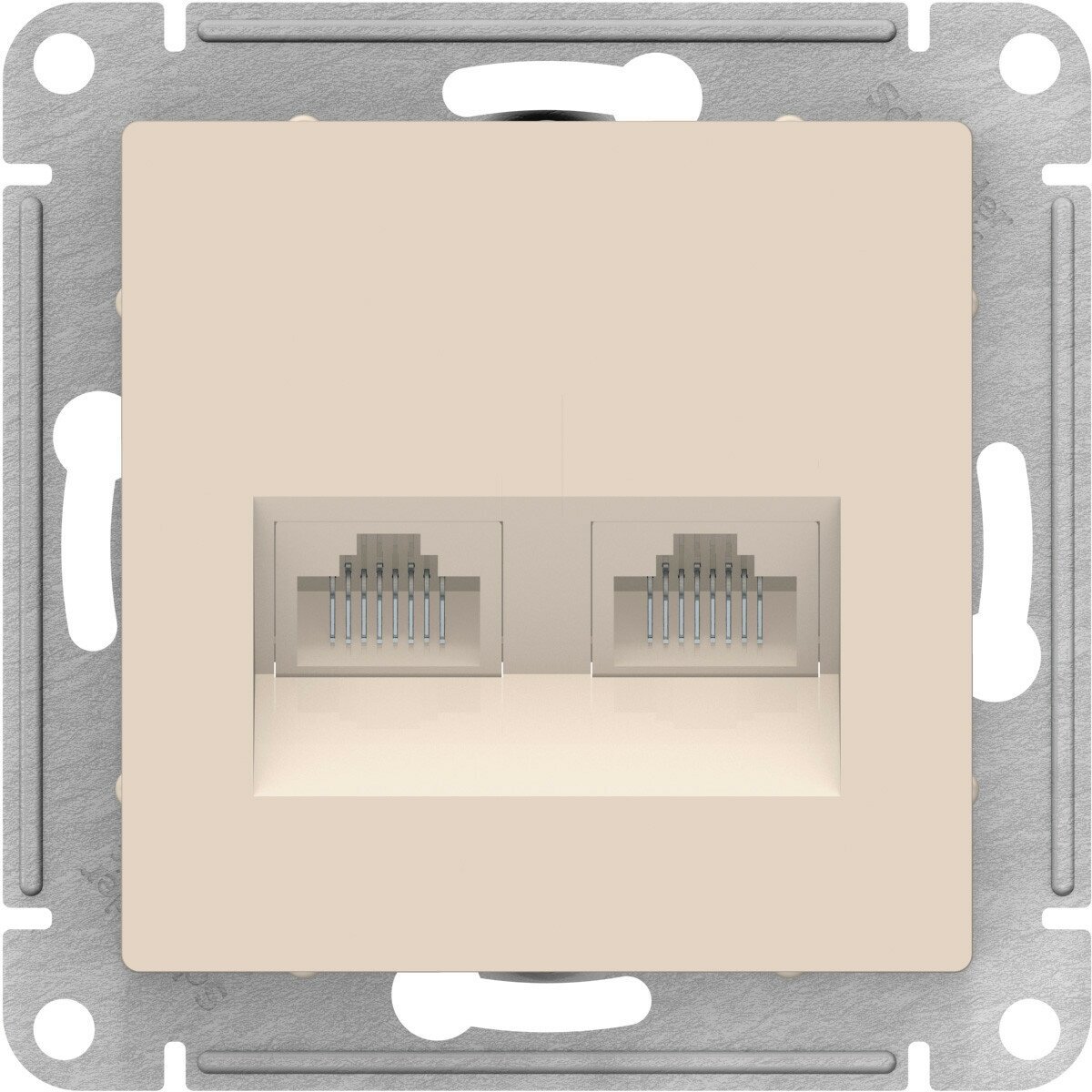 Розетка двойная компьютерная Schneider Electric AtlasDesign RJ45+RJ45, категория 5E, бежевая ATN000285 информация: