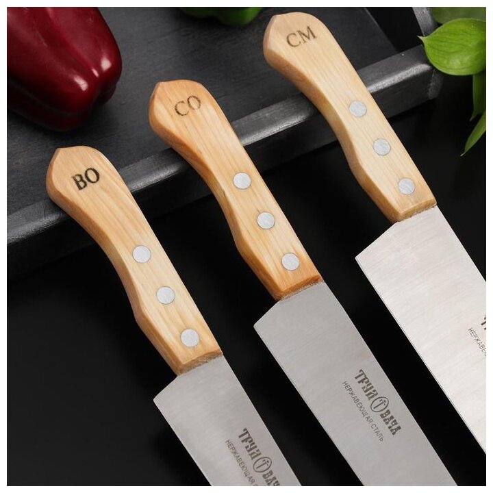 10 цен на Набор кухонных ножей Труд Вача "Поварская тройка", 3 шт, цвет бежевый