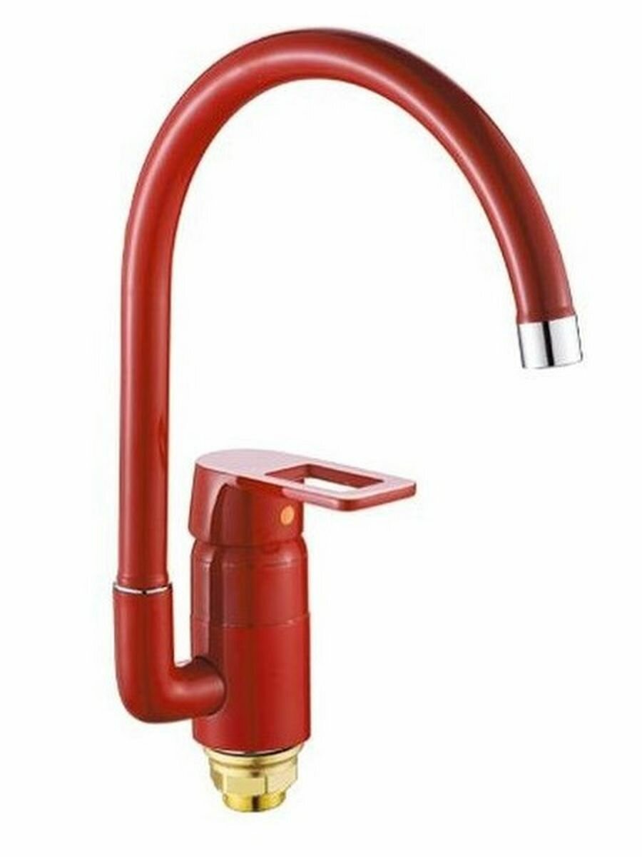 Смеситель на кухню Potato P7030-5 высокий излив, одноручковый, крепление гайка, красный