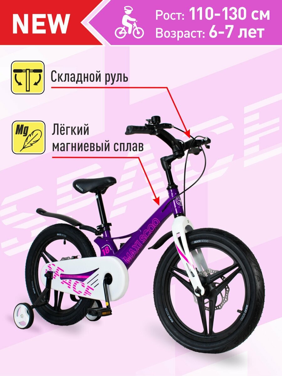 Детский Двухколесный Велосипед MAXISCOO на магниевой раме Space Делюкс 18 Фиолетовый (2022) MSC-S1815D