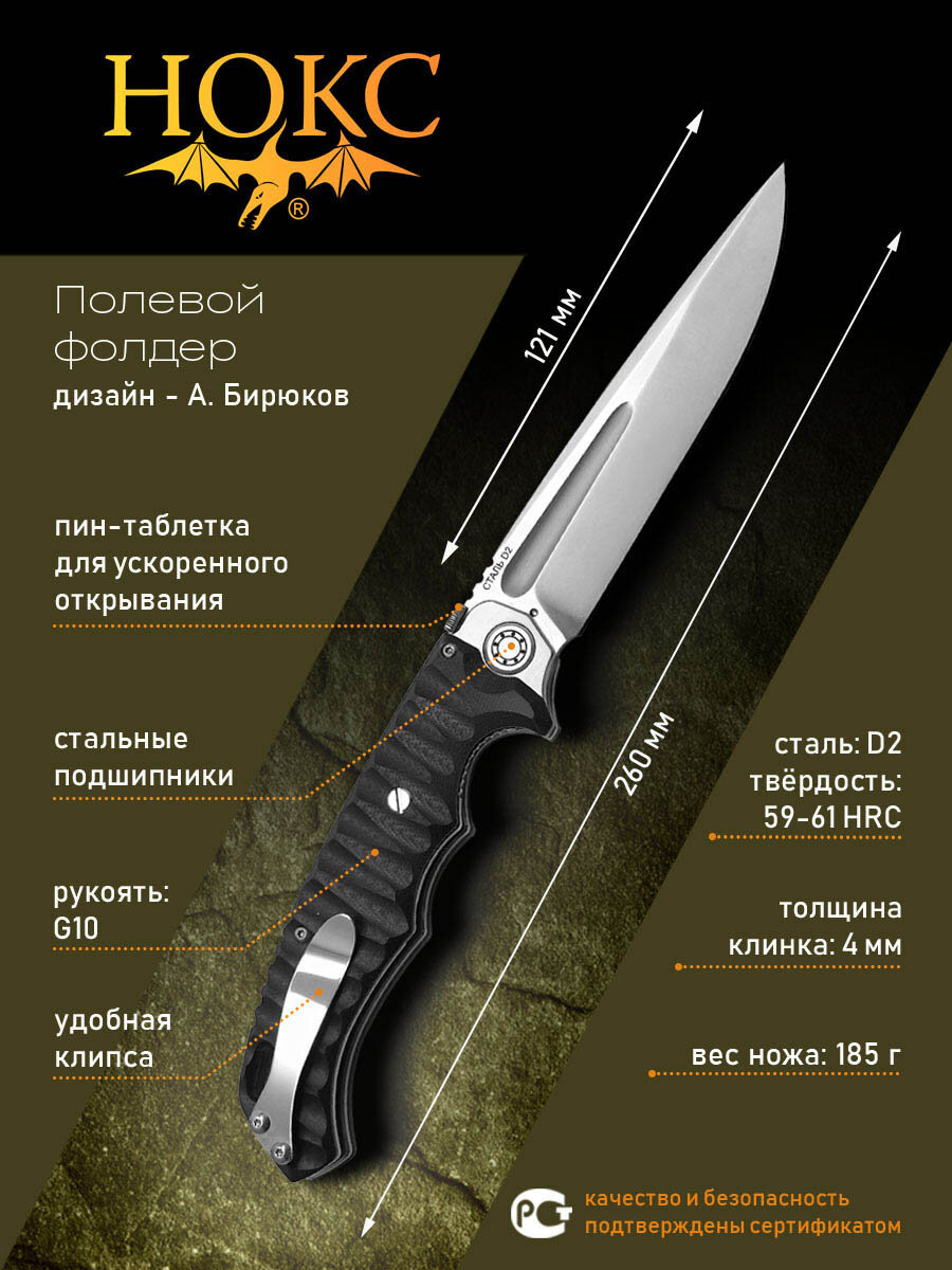 Нож складной нокс 342-100406 (Финка-С), универсальный складной фолдер, сталь D2