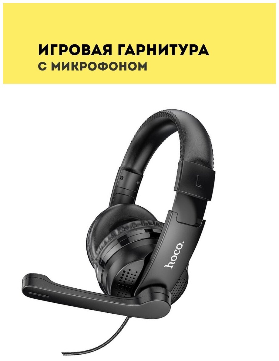 Наушники Hoco W103, игровые, полноразмерные, микрофон, 3.5 мм, 1.2 м, черные информация: