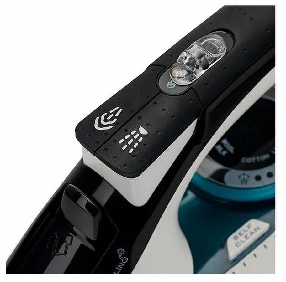 Утюг Polaris, PIR 2695AK, 2600 Вт, керамика, вертикальное отпаривание, противокапельная система, система самоочистки, защита от накипи, 3 м, белый/бирюзовый. 397061 информация:
