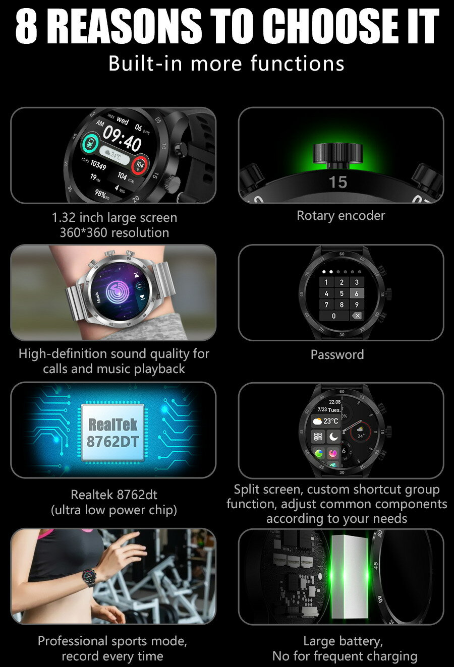 Lemfo Смарт часы мужские AK72 с bluetooth звонком (Черный)