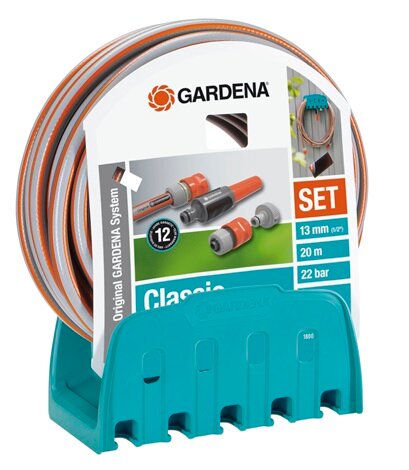 Шланг Classic 13 мм (1/2"), 20 м. с комплектом для полива и настенным кронштейном GARDENA