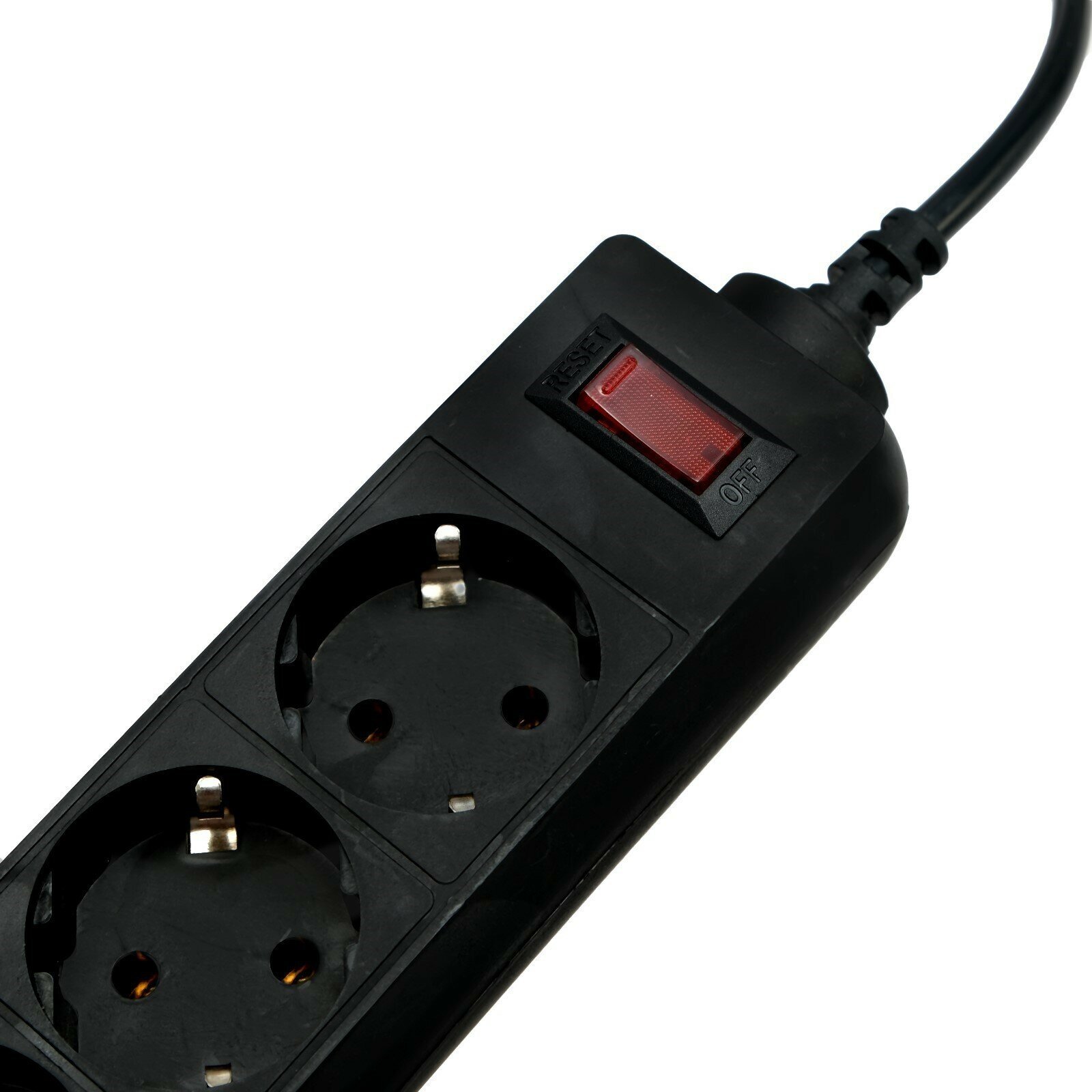 Сетевой фильтр Luazon Lighting, 4 розетки, 5 м, 2200 Вт, 3 х 0.75 мм2, 10 А, 220 В, черный