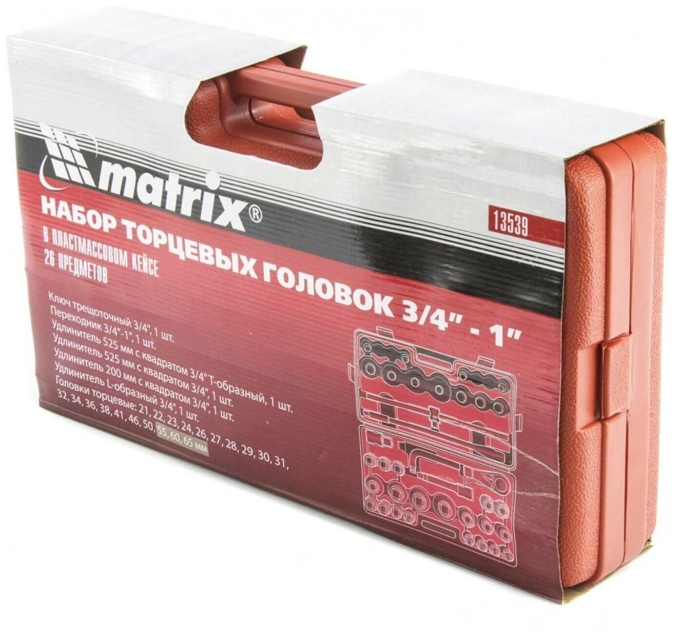 Отзывы на Набор торцевых головок, квадрат, 3/4"–1", головки 21 х 65, 26 пред., в пласт. боксе Matrix 13539
