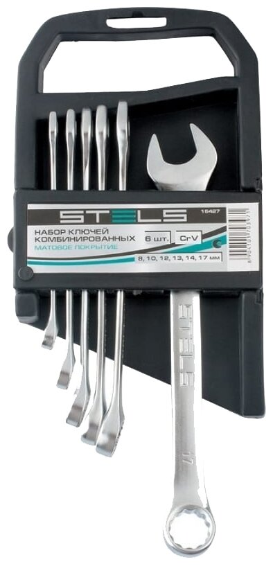 Набор ключей комбинированных, 8 - 17 мм, 6 шт., CrV, матовый хром// Stels 15427 информация: