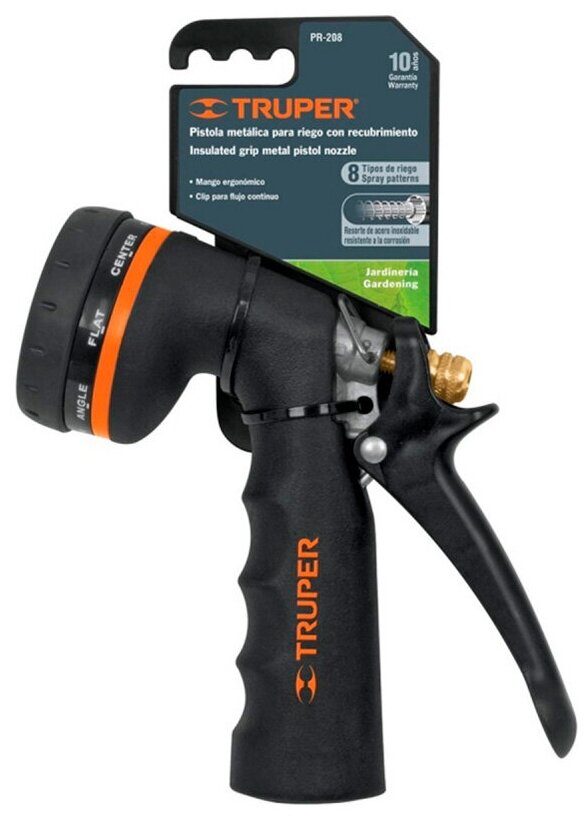 Пистолет для полива Truper / Трупер c коннектором, 8 режимов распыления, диаметр входного отверстия 3/4 / сад и огород