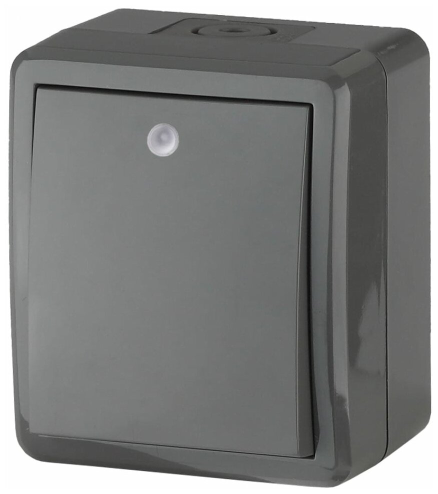 10 цен на ЭРА Эксперт Серый Выключатель с подсветкой IP54, 10АХ-250В, открытая установка 11-1402-03 Б00206