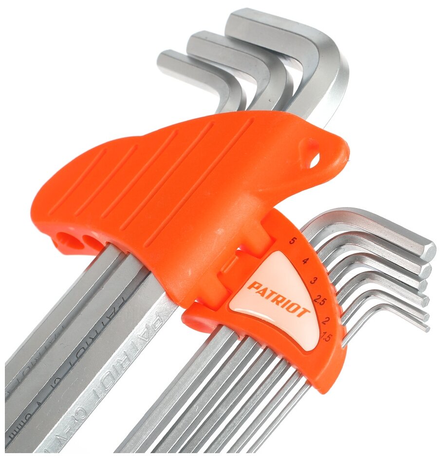 Набор ключей Patriot SKH-9EL, шестигранные, с шаром, экстра длинные, 15-10 мм, CRV, 9 шт