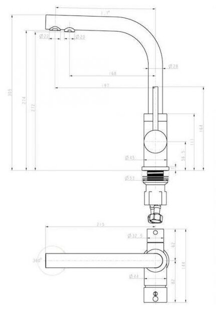 Смеситель для кухни с подключением к фильтру с питьевой водой из нержавеющей стали SUS304 Calorie CAL50116-3