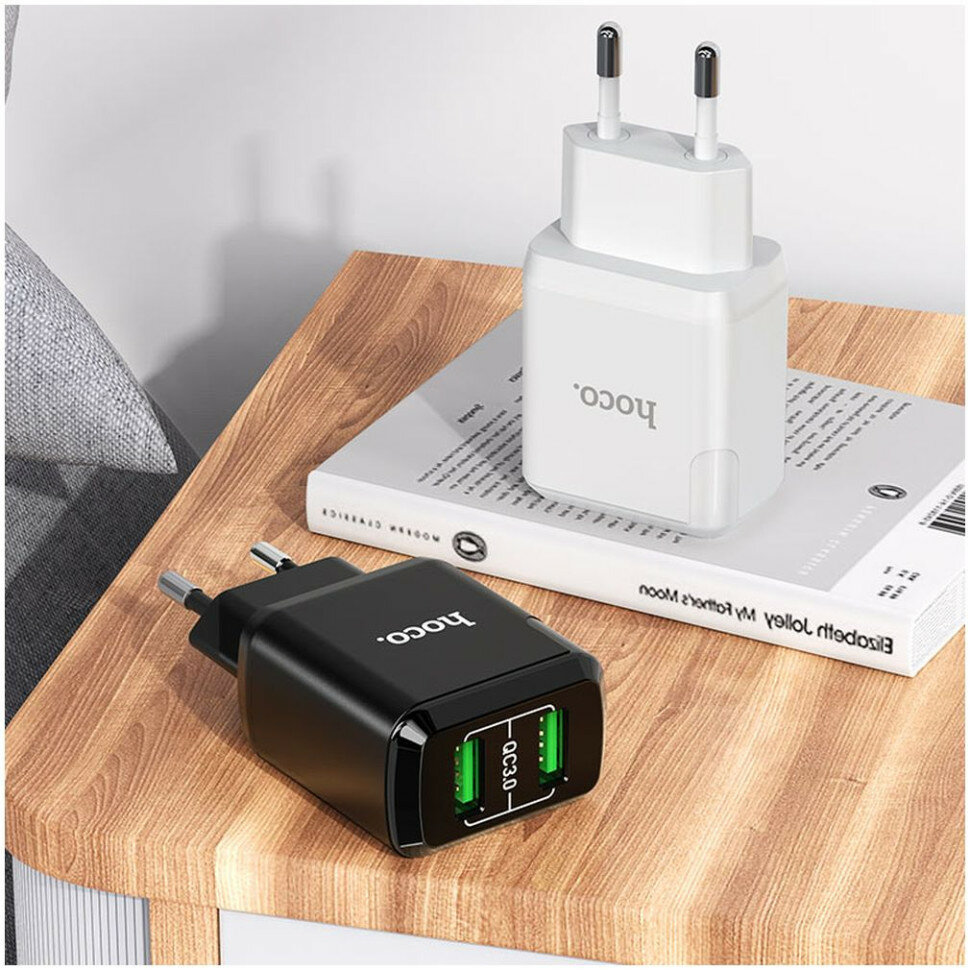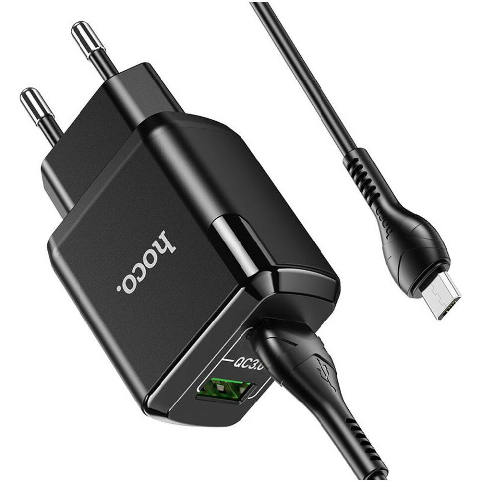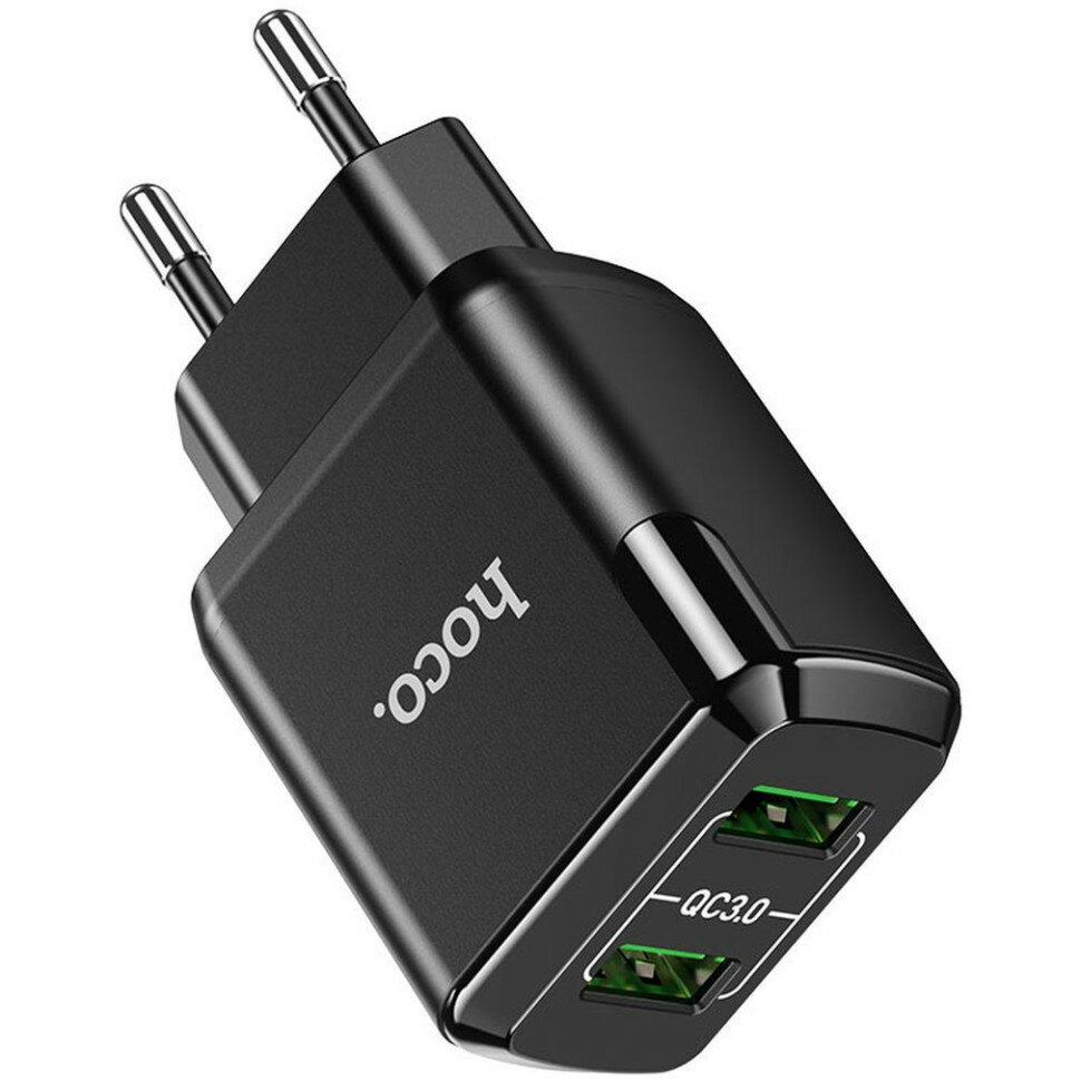 10 цен на Зарядное устройство быстрое 2xUSB с проводом microUSB 100см. 3А, hoco. N6 Charmer 18W/QC - черный