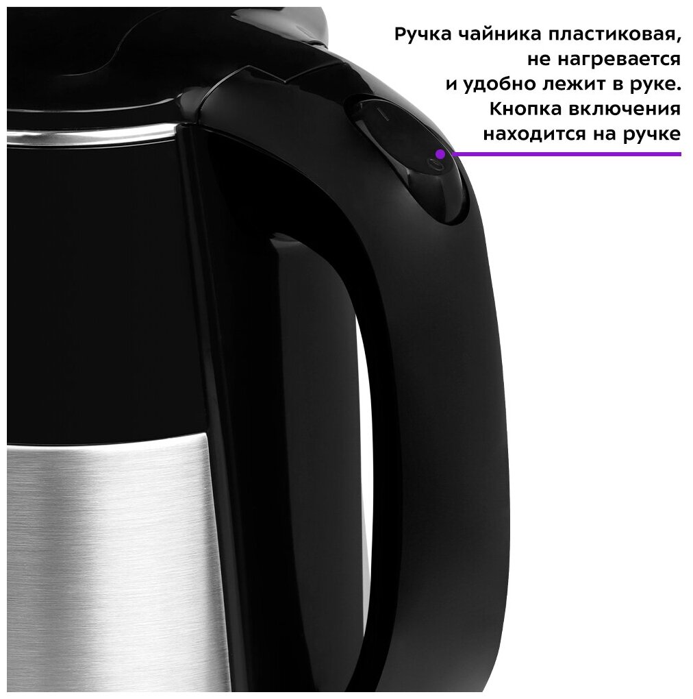 Чайник Hyundai HYK-S7770, нержавеющая сталь, 1,7 л, мощность 2200 Вт