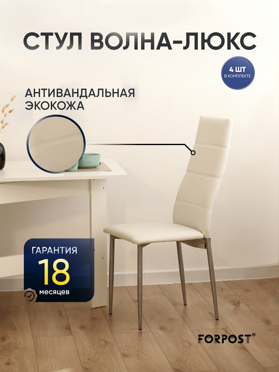 Стул для кухни мягкий со спинкой Волна-Люкс, 4 штуки белый информация: