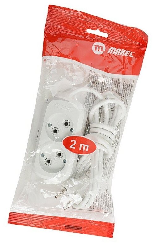 Удлинитель Makel 2 м 2 гнезда без заземления электрический белый, MGP102
