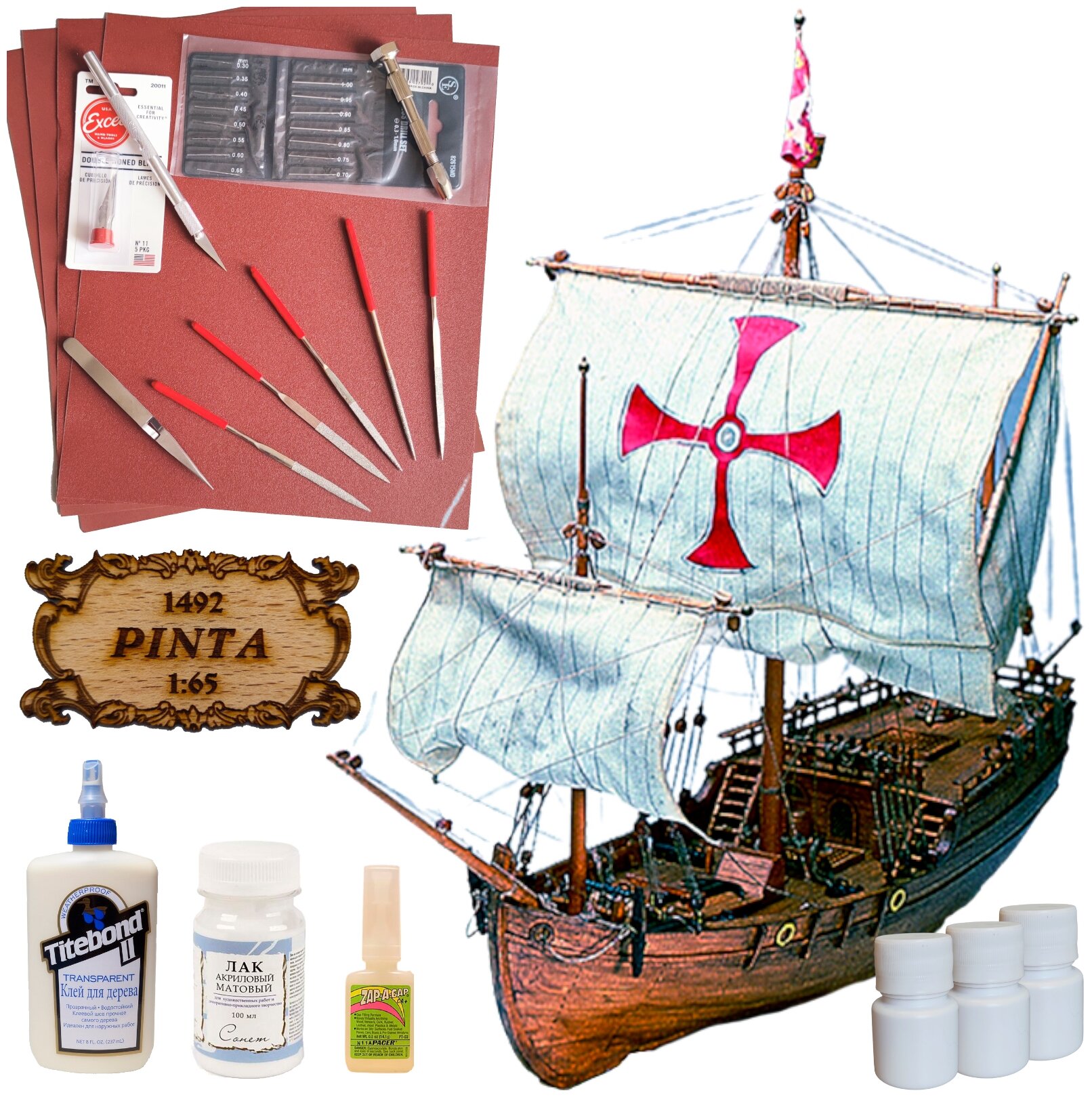 10 цен на Модель парусного корабля Amati (Италия), Каравелла Pinta, М. 1:65, подарочный набор для сборки + инструменты, краски, клей