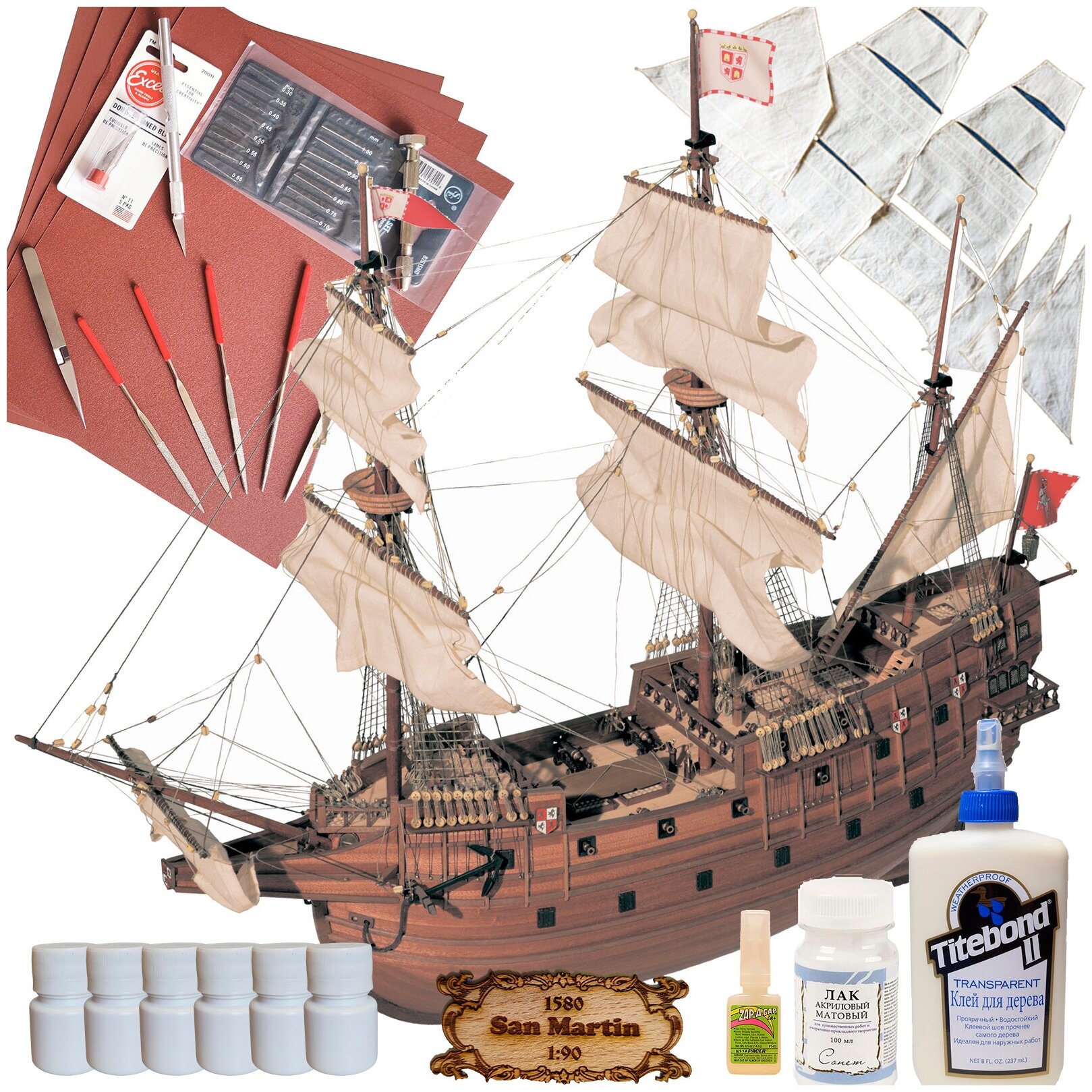 Модель парусного корабля OcCre (Испания), Галеон San Martin, М. 1:90, подарочный набор для сборки информация: