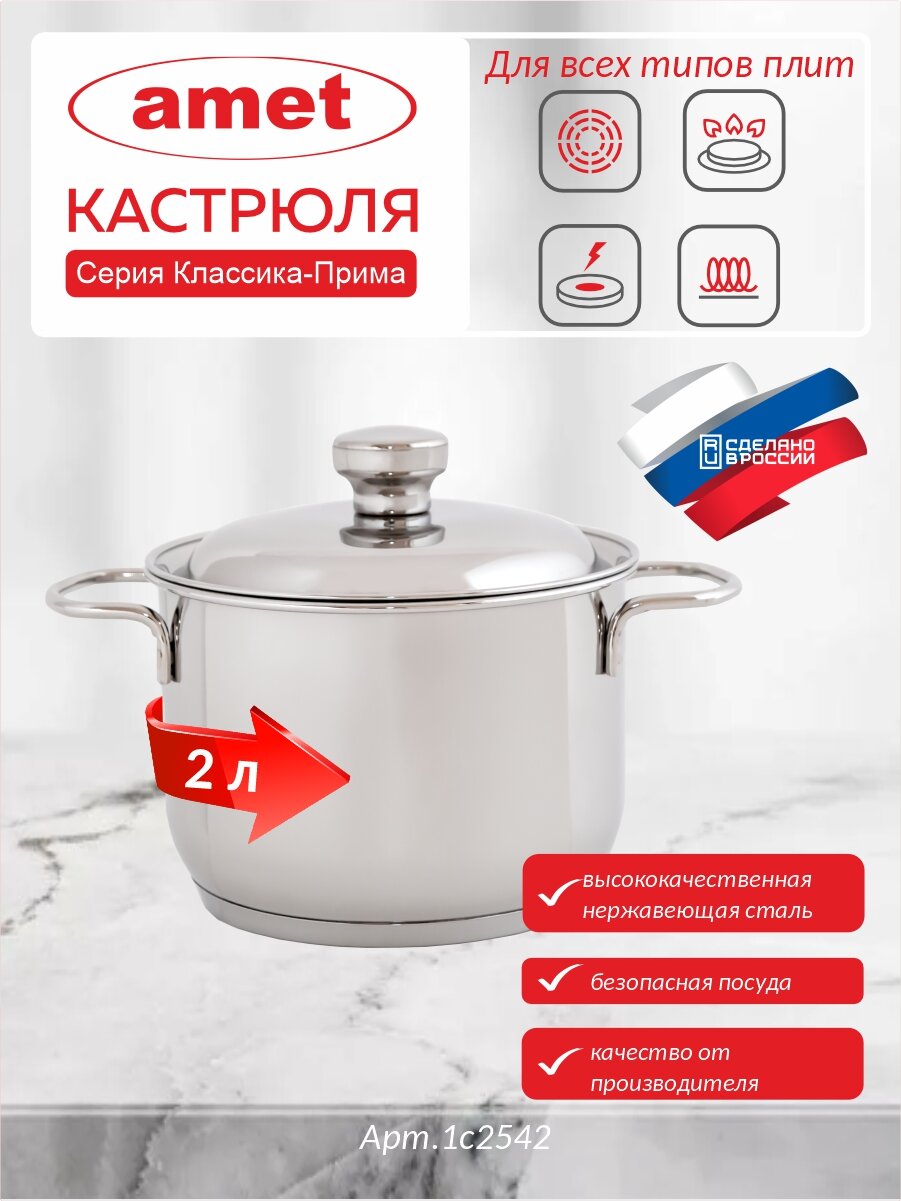 Кастрюля 2 л амет, 1С-2542, нерж.сталь, зеркальная полировка