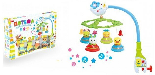 Музыкальная карусель для кроватки на бат. 4 ярких подвесных игрушки, колыбельные мелодии, свет. эффе