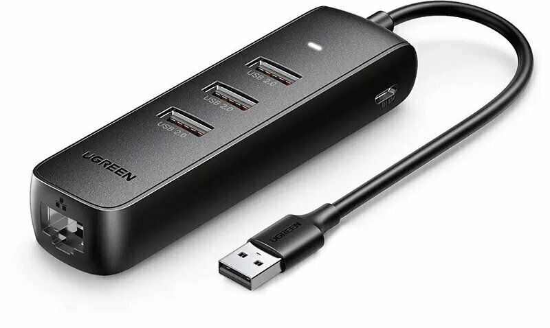 Отзывы на Адаптер UGREEN CM416 (20984) USB 2.0 to 3×USB 2.0+RJ45 (100Mbps) Ethernet Adapter чёрный