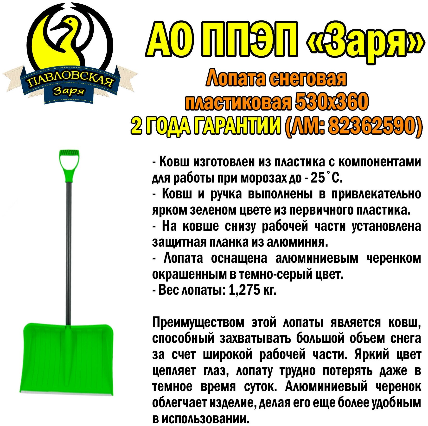 Лопата снеговая Павловская Заря Prof (008006) пластиковая с металлическим черенком 530х325 мм