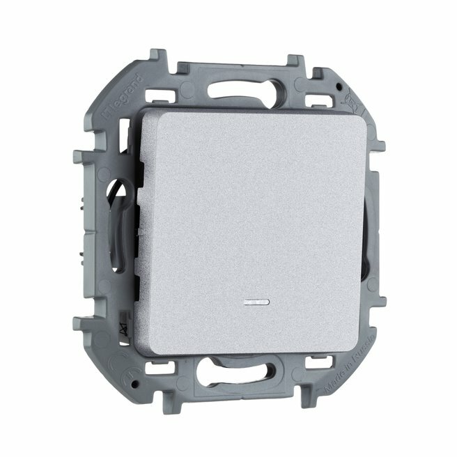 Legrand INSPIRIA Алюминий Выключатель одноклавишный с подсветкой/индикацией 10 AX - 250 В информация: