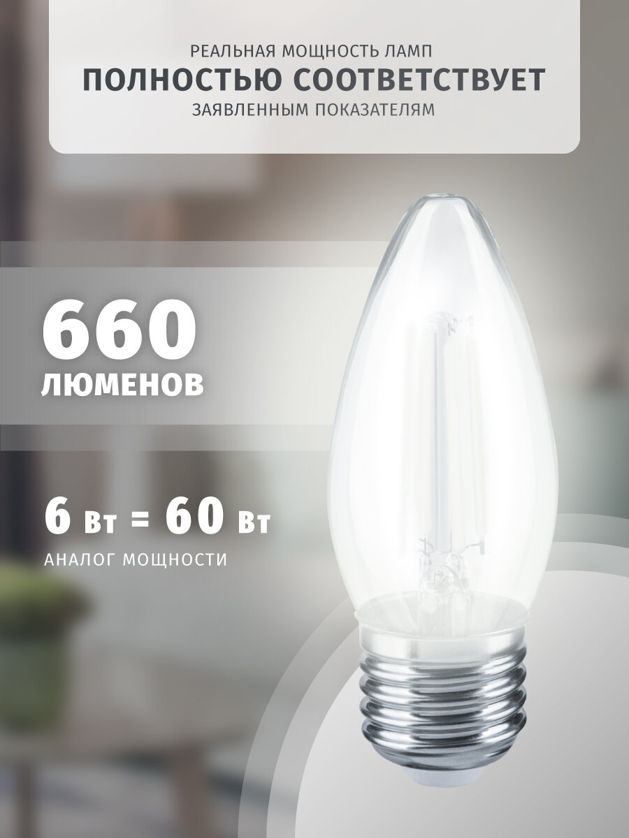Отзывы на Лампа светодиодная филаментная Navigator 14 008, свеча, 6 Вт, Е27, дневного света 4000К, упаковка 10 шт.