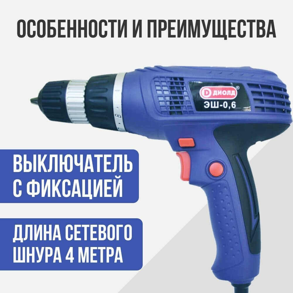Дрель-шуруповерт диолд ЭШ-0,6, сетевой [10031090] 3 818 ₽