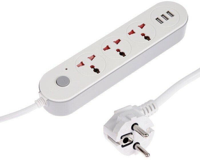 10 цен на Удлинитель, 3 розетки, 3 м, 10 А, 2200 Вт, 2х0.75 мм2, 3хUSB, с выкл., Б