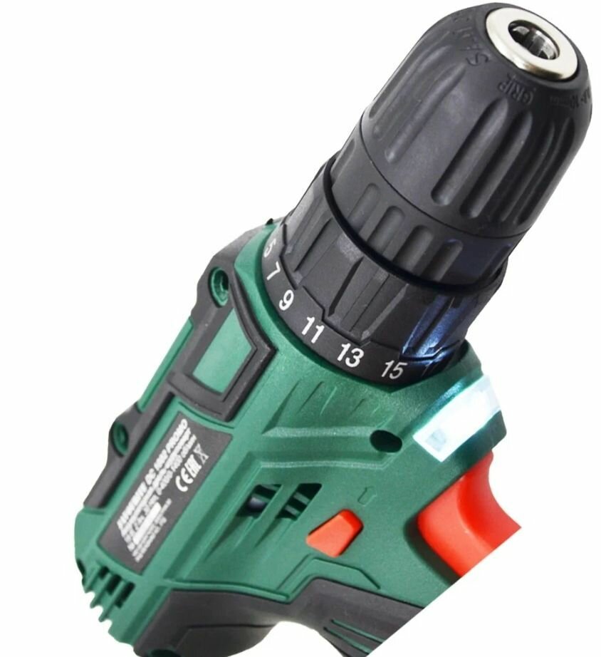 Аккумуляторная дрель-шуруповёрт Li-ion DC 1202 PROMO SET в кейсе, 12 В, 2 Ач, 25+1, набор оснастки (24 шт) FAVOURITE 2 АКБ