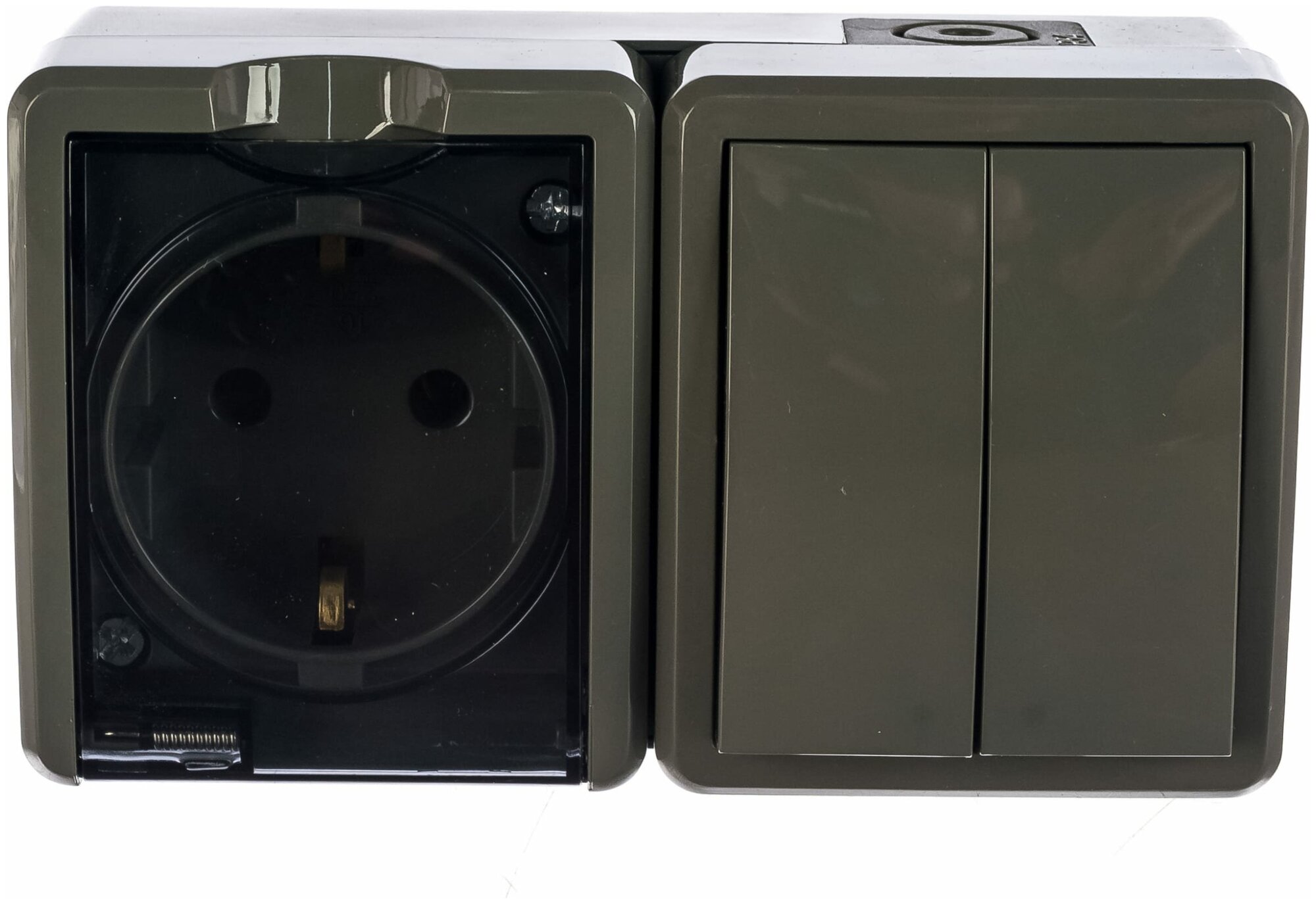 Двойной блок розетка и выключатель ЭРА 11-7402-03 IP54, 16A 10AX -250В, ОУ, Эксперт, серый Б0020736 информация: