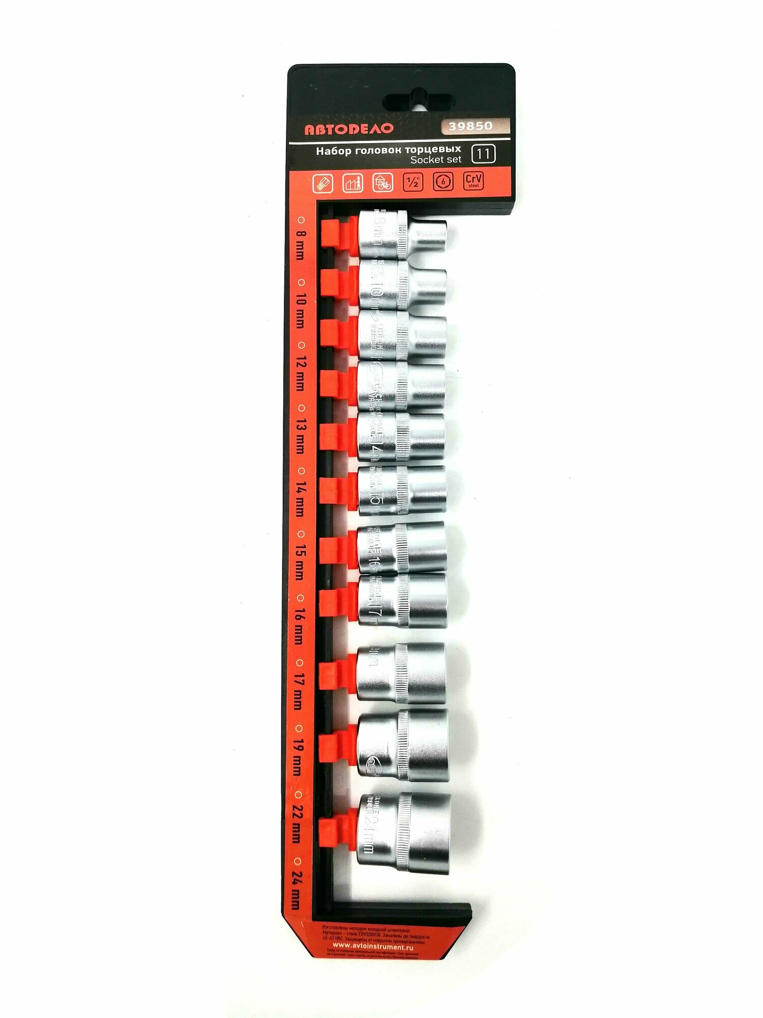 Автодело 39850 Набор головок 1/2" 11 пр. 6 гр. 8-24 мм на держателе АвтоДело