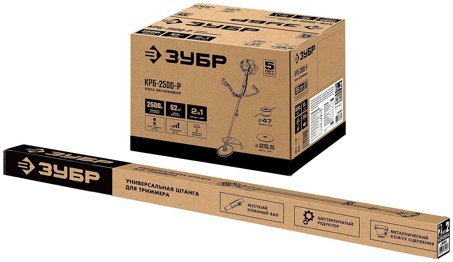 ЗУБР КРБ-2500-Р бензокоса, 2.5 кВт / 3.3 л.с., 52 см3, разборная штанга(КРБ-2500-Р) информация:
