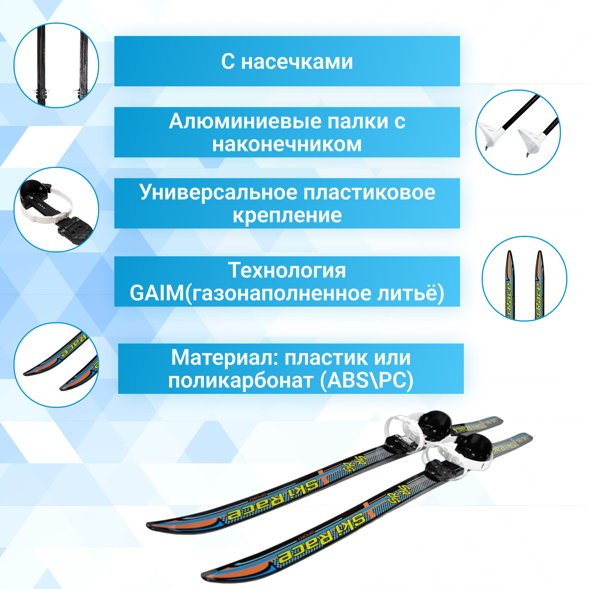 Лыжи подростковые Ski Race с палками стеклопластик, унив.крепление, (140/105) Олимпик 332485-00 информация: