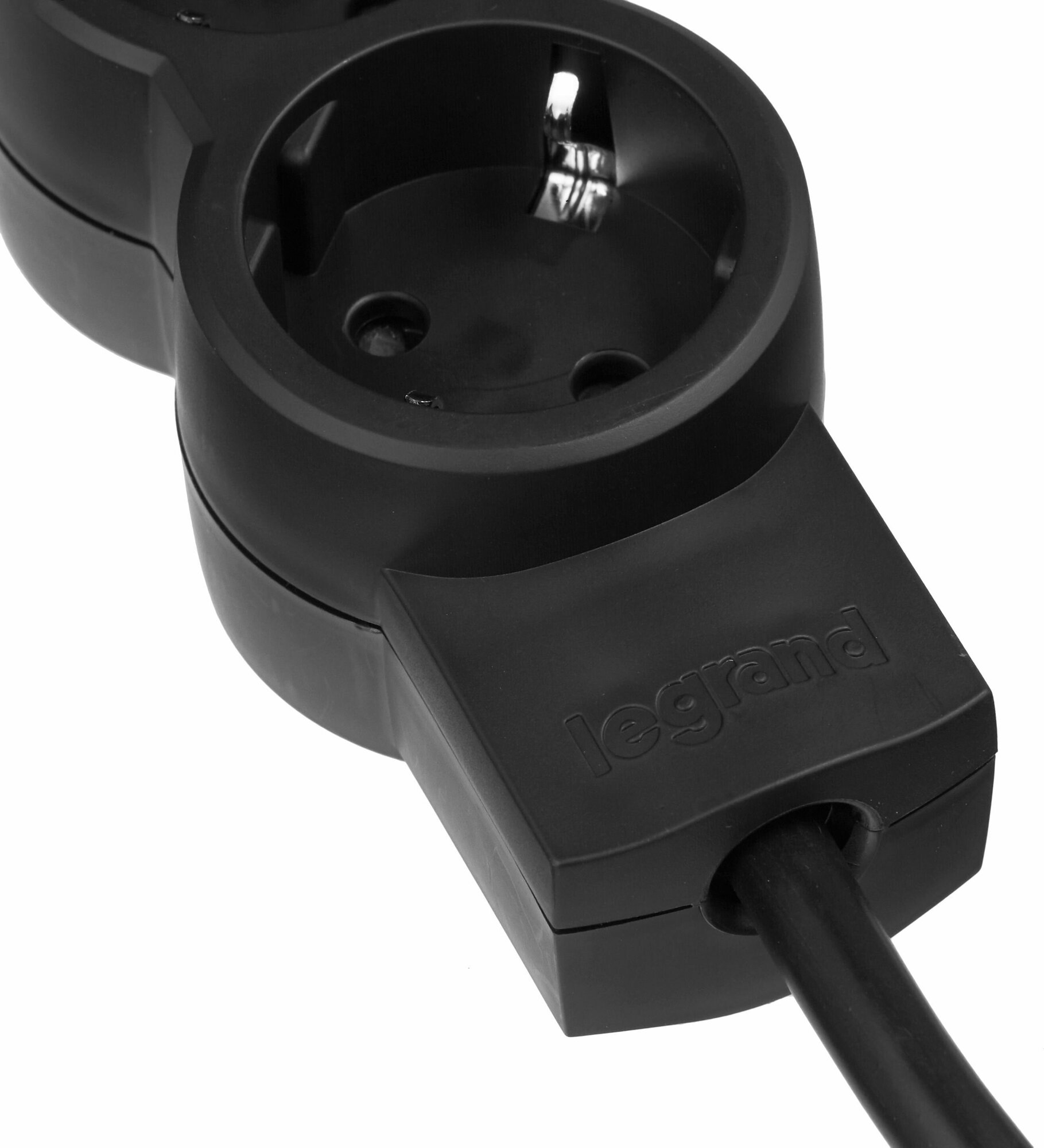 Удлинитель с заземлением Legrand 6 розеток с кабелем 1,5 м, с кнопкой включения и поворотным основанием, цвет: черный , арт. 694534