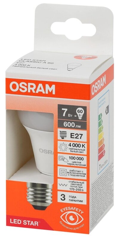 Отзывы на Светодиодная лампа Osram LS CLA60 7W/840 230VFR E27 10x1 4058075695689