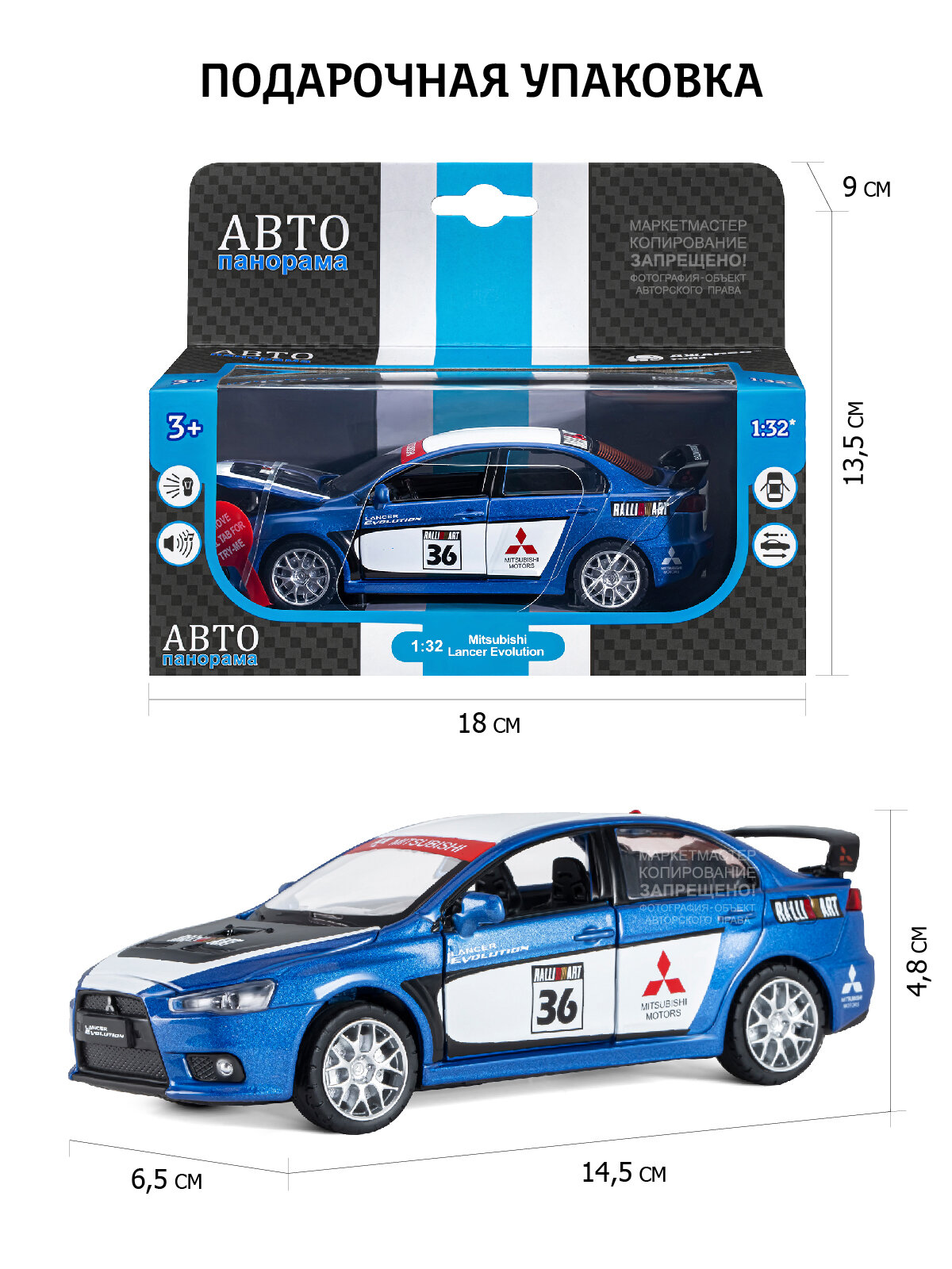 Машинка металлическая инерционная ТМ Автопанорама, Mitsubishi Lancer Evolution, М1:32, свет, звук, синий, JB1251472 информация: