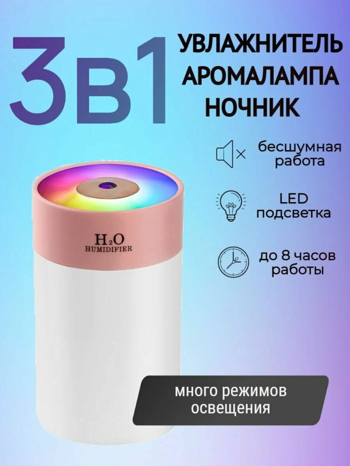 Отзывы на Парогенератор, аромадиффузор - ночник Humidifier H2O H-5, Увлажнитель воздуха, розовый