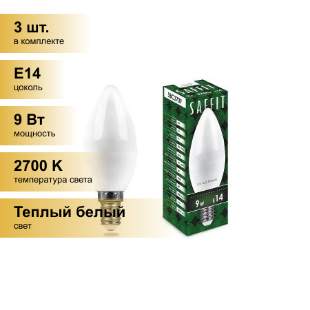 (3 шт.) Светодиодная лампочка Saffit свеча C37 E14 9W(810Lm) 2700K 2K матовая 100x37 SBC3709 55078 информация: