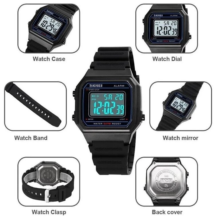 Отзывы на Наручные часы SKMEI Часы наручные Skmei 1698, с секундомером, электронные, водонепроницаемые, черный