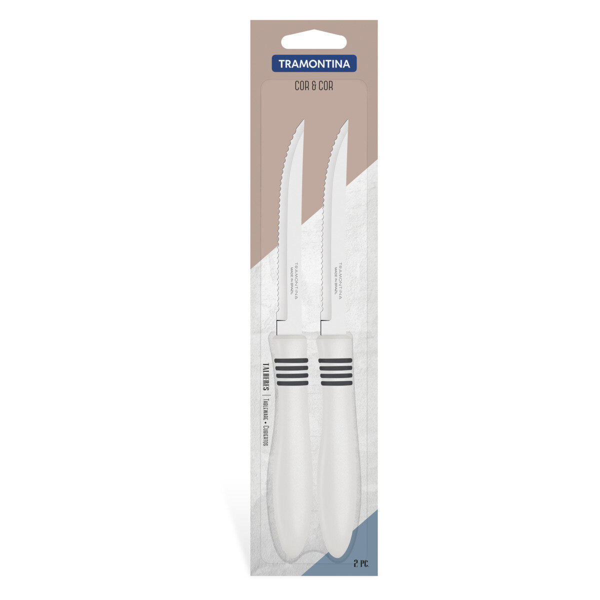нож (TRAMONTINA Нож для стейка Cor & Cor 13см белый 2шт блистер 23450/255)