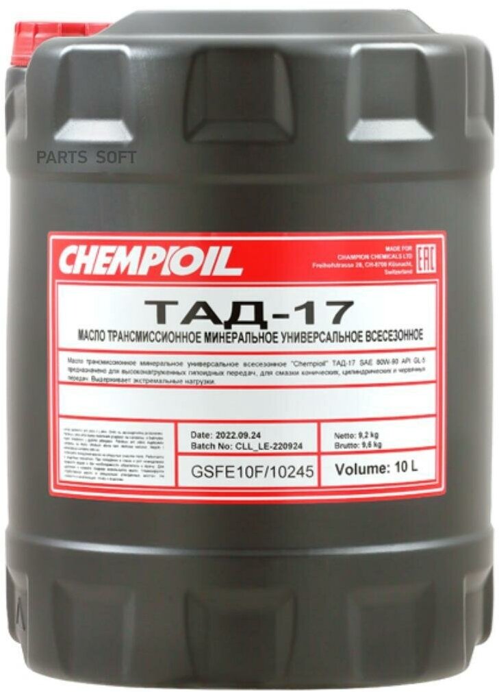 10 цен на Тад17 10Л Мин Транс Масло CHEMPIOIL арт. ch830110e
