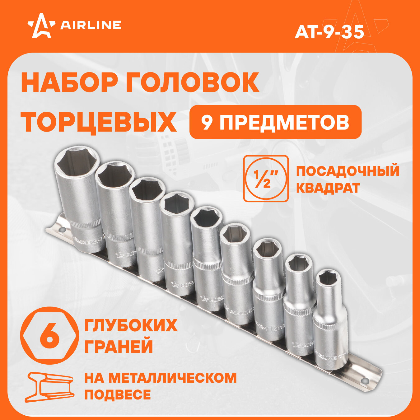 10 цен на Набор головок торцевых 1/2" DR шестигранных 9пр. глубоких (10,11,12,13,14,15,17,19,22мм) AT-9-35 AIRLINE