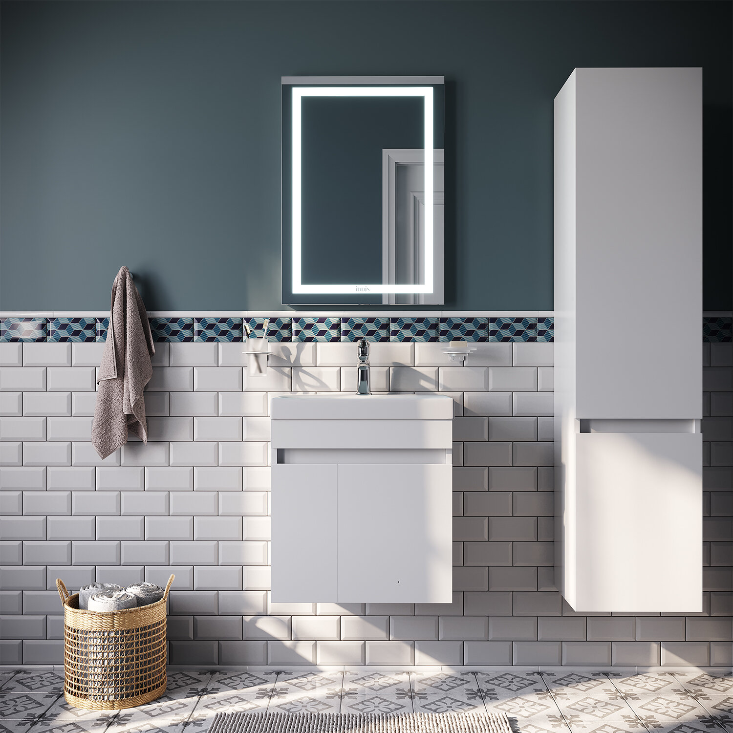 Тумба с умывальником подвесная с дверцами, 50 см, белая, Iddis Zodiac