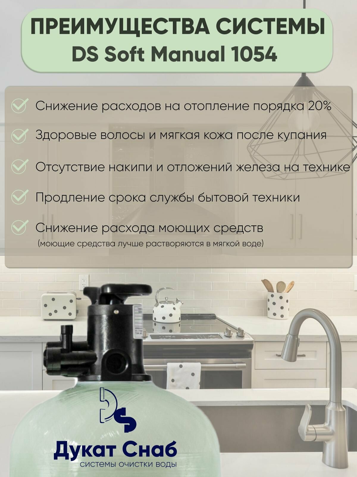 Система очистки воды Manual 1054. Комплект фильтр умягчения и обезжелезивания воды для дома, квартиры и дачи под загрузку. Потребители до 4 человек. информация: